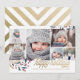 Det här nyckfulla och festliga julkortet med 6 foton har ett fotokollage, vinterbär och säger "God Jul" med falsk guldfolie som är tryckt plant.