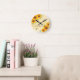 En gyllene bakgrund med ett bikakemönster och glada leende humlor. Dekorerad med gula och orange solrosor, blommor och grönska. Personifiera och ditt namn. Namnet skrivs med en modern, stor handskriven stilsnittskrift med svängar. För att behålla svängarna, radera endast provnamnet, lämna utrymmena eller emojierna före och efter namnet. Svarta bokstäver.