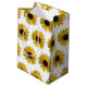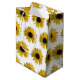 Ljusa kortkortgultsolrosor dekorerar denna gåva hänger lös. Finna också matcha silkespapperpapper med ljusa gula solrosor.