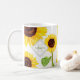 Med vår akvarellillustration av yppiga gula solrosor är denna mugg en perfekt present till alla. Lägg till en monogram och ett namn för att personifiera.
