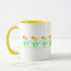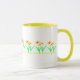 Jag älskar att se tulpaner sticka upp huvudet ur marken. Jag förundras varje gång över hur något så ömtåligt kan överleva vintern. Att se tulpaner berättar också för mig att våren, min favoritårstid, är här. Tulpanernas blommor på denna mugg ritades för hand av W.B. med Prisma-färger.