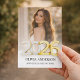 Fira din examenkandidat med stil med denna moderna fotoexamen-inbjudan med en djärv guld “2026” överlagring och elegant neutral design.