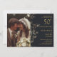 Denna eleganta, svarta och gyllene blomsterinbjudan för 50-års bröllopsjubileum kan anpassas med din information i modern gyllene typografi och ert speciella bröllopsfoto. Designad av Thisisnotme