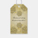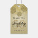 Elegant 50:e födelsedag "Tack"-presenttagg/förmånstagg, med Guld Faux Glitter Snöflingor & bokeh-glödande ljus mot bakgrund av Guld (du kan ändra bakgrund märkre till färg till kostym när du behöver det) och anpassningsbar "tack" + detaljtext.