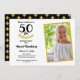 En klassisk guldbal och svart elegant 50-årsfirande fotoinbjudan som kan anpassas för en femtioårsfest. '50 och fantastisk' är tryckt på ett glatt sätt med modern typografi. Ersätt provfotot med ditt eget och de guldbal och svarta textfärgerna kan ändras med hjälp av redigeringsmenyn. Ett guldbal med sammanflätande oval mönster på en svart bakgrund finns på baksidan av kortet.