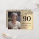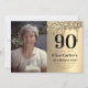 Guld, svart, enkel, foto, elegant, feminin, vuxen, typografi, glimmer, glamour, akvarell 90-års födelsedagsfest, nittioårs inbjudningar. Anpassa det med dina detaljer.