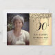 Guld, svart, enkel, foto, elegant, feminin, vuxen, typografi, gnistra, glam, vattenfärg, 90:e Födelsedagsfest, nittio inbjudningar. Anpassa den med dina detaljer.