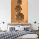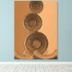 Modern abstrakt konst på premium lindad canvas (matta finish). Texturerade gyllene cirklar på jordnära halvton bakgrund. Finns i olika storlekar (t.ex. 16×12″ upp till 40×30″) med valfri svart ram. Skapar en lugn, elegant atmosfär i vardagsrum, sovrum eller kontor. Högkvalitativ dekoration, perfekt som en unik bröllops eller inflyttningspresent.