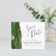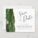 Med den här eleganten sparar du datumkortet en grönt med en vattenfärgsagate i gräns som trimmas med faux guld glitter. I anpassadet kombineras handskriftsskript för kol-grått, kopparplåt och kursivt typsnitt på vit bakgrund. Den omvända sidan har en matchande grönt och guld agate-design.