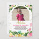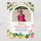 Guld Aloha Blommigt Flamingo Arch Photo 1st Birthd Inbjudningar