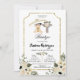 Guld and White Blommigt Boy Bautizo-inbjudan