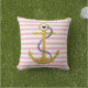 Guld ankarpunkt rosa, sjömansfartyg i vitt rand kudde