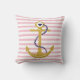 Guld glitter ankar rosa och vit rand nautiska dekorativ kudde. Den viktigaste inslag i denna sommar är ankaret i guld.