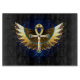 Golden Egyptian ankh med mönstrad, glansig vingar mot svart bakgrund. Magisk symbol.