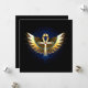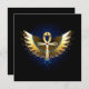 Golden Egyptian ankh med mönstrad, glansig vingar mot svart bakgrund. Magisk symbol.