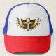 Golden Egyptian ankh med mönstrad, glansig vingar mot svart bakgrund. Magisk symbol.