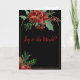Dela med dina julönskningar med en touch av tidlös sofistikation. Detta lyxiga julkort har en fantastisk guldbåge i ram mot en elegant svart bakgrund. Designen är vackert accentuerad med klassisk akvarell-julgrönska, inklusive röda julstjärnor, livfulla julgranar och naturliga kottar, alla detaljerade med fina guldkonturer.