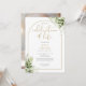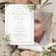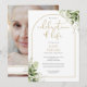 En elegant botanisk personlig akvarell grönska firande av liv foto minnesinbjudan. Designad av Thisisnotme©