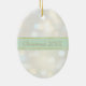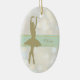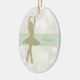 En guld-ballerina strejkor en fläck på framsidan av den söt personligens julprydnad. Bakom dansaren finns en banner för mynta gröntar som är infogad i guld med anpassningsbarna i guld. Bilder placeras på en ljusbåge med abstrakt som verkar glänsa med ljus. Baksidan av dekorationen har samma bakgrund och banderoll med en annan anpassningsbar text fält. Det här är ett underbart keepéprydnadsföremål för dansaren i ditt liv!