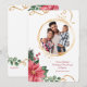 En trendig, fotodesign för semesterkort med röda julstjärnor, bär och grönt med lockiga gyllene band och ett runt fotofönster. (Foto av människor skapad av drobotdean - www.freepik.com). (Vektor skapad av freepik - www.freepik.com). Kortet är lätt att anpassa med din egen text, typsnitt, typsnittsfärg, pappersform och val av papperstyp. Inte exakt vad du söker? Alla våra produkter kan specialdesignas för att passa dina behov utan extra kostnad. Kontakta oss helt enkelt på heartfelthelper@gmail.com. Koordinerade produkter tillgängliga: Fråga oss!