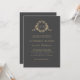 Guld Baroque Vapensköld Mörk Grått Monogram Bröllo Inbjudningar