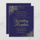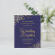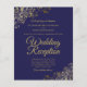Dessa prisvärda, budgetvänliga bröllopsinbjudningar är perfektens val för klass, stil och skönhet i en budget. Designade för gäster som är inbjudna till mottagningen men inte till ceremonin, har en marin blå bakgrund med ornerade golden faux foil curls och snurrar i hörnen. I typografin ingår skriptbokstäver i finare guld för ett stil som är enkelt och elegant vid gång. Underbart sätt att inbjudan dina vänner och din familj till i din glädje på din speciella dag utan att bryta banken.