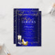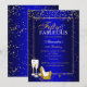 50-års födelsedagsinbjudan. Elegant blå guld glitter gnistra champagne och högklackade skor firande. Anpassa med dina egna detaljer. OBSERVERA alla platta bilder! De har INTE riktiga diamanter eller juveler!!