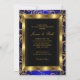 Guld & blå bröllopsinbjudan. Elegant svart juvelbow & guld glitter blomdesign. De har INTE riktiga juveler eller slingor!