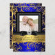 Guld Blå Blommig Foto 50-års bröllopsdag Inbjudningar