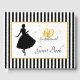 Fira din 60- och SENSATIONELLA födelsedag i stil med den här gästen bok som har en elegant och chic. Den feminina silhuetten kompletterar den svarta och vita rand mönster mot bakgrunden. Njut!
