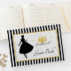 Fira din 60- och SENSATIONELLA födelsedag i stil med den här gästen bok som har en elegant och chic. Den feminina silhuetten kompletterar den svarta och vita rand mönster mot bakgrunden. Njut!