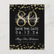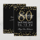 Elegantens "80:e Födelsedagsfest"-design med Guld Faux Glitter Confetti Black och anpassad namn och detaljtext. Lätt att använda och lätt att anpassa. Ordna i dag!