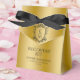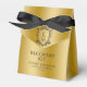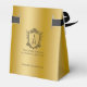 Perfekt förpackning för en återställningssats efter en roligt firande på din speciella dag. Den här bröllop-utformningen har en vintage vapensköld för svart blommigt med personligt bröllp initialer mot bakgrund av anpassningsbar guld.