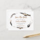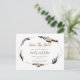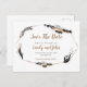 Ett bekvämt sätt att be dina gäster att spara datumet är genom vykort. Den här eleganten har en Boho black och guld Fjäthery lövs-design på ett geometriskt ram som gränsar till svart och guld-typografi. Text är lätt att personlig och färgen kan ändras om du så önskar