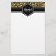 Chic guld och svartleopard är pappra med ett eget namn och en monogrammall. En söt och trendig safari-djurskrift med mönster-bakgrund full med din egen personliga anpassning.