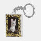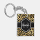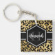 Chic guld och svart leopard skriver ut dubbla siderad nyckelkedja med ett eget namn och en monogrammall på ena sidan och ditt foto på den andra. En söt och trendig safari-djurskrift med mönster-bakgrund full med din egen personliga anpassning.