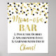 Momosa pub-skylten poster för babydusch i vitt med en svart och guld-konfetti mönster med handskriven stil-skrift. Perfekt för babyduschar och baby sprinkle.