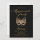 Snyggt Modern Masquerapartybjudan. Elegantens handskrivna kalligrafi i kombination med ett modernt teckensnitt på en svart bakgrund kompletterar varandra och ser harmonisk ut samtidigt.