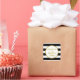Anpassningsbar helgdag baksetiketter med svartvit rand mönster och guld.