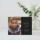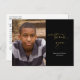 Det minimalistiska studenten-tack du har för vykort har ett stort foto och avslappnad guld-kalligrafi. "Tack" står skrivet i det moderna skriptet guld, där student namn och studenten står i vitt, allt mot en svart bakgrund. Lägg till ett stort foto av den nya graden till lämnat. På baksidan kan du skriva ett anpassningsbar-meddelande till mottagarna, eller ta bort malltexten om du vill skapa ett tomt område för en handskriven anteckning.
