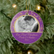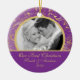 Vår första julprydnad för fotoet presenterar en härlig guld- blom- purpurfärgad bakgrund. Personifiera med din information och datera, och du är all uppsättning som går! Den underbara daterade minnessakgåvan för din första jul och ett underbart tillägg till dig jul smyckar samlingen.