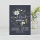 Moderna Eleganta Svarta Vita och Guld Blommiga Krans Bröllopsfirande / Bröllopsinbjudan Kort Mall.