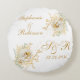 Guld vinter blomster monogram logotyp bröllopspresent rund kudde. Bra present till nygifta och dina nära och kära. Lätt att anpassa brudgummens namn, initialer och bröllopsdatum. Skaffa din idag!