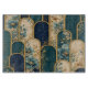 Förvandla din köksmiljö till ett elegant statement med denna lyxiga skärbräda som har ett fantastiskt moriskt valvdesign kombinerat med känsliga blomdetaljer i rika teal-, guld- och marinblå nyanser.