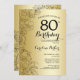 Guld Blommigt 80:e Födelsedagsfesten Inbjudningar