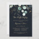 Den här blommigten i guld, blå natten före middagsinbjudan är perfekt för en enkel natt innan familjen och vänner i bröllop går och äter middag. Den här konstnärliga utformningen har handritad blommigt från guld och grönt av eukalyptus i en mörk blått bakgrund, som inspirerar naturskönheten.