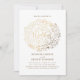 Guldfolie, effekt - baby utandning - blommigt bouquet vit, modern bröllopsinbjudan.