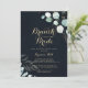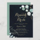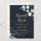 Den här blommigten brunch i guld med kallduschinbjudan till blåbruden är perfekt för en strålande möhippa. Den här konstnärliga utformningen har handritad blommigt från guld och grönt av eukalyptus i en mörk blått bakgrund, som inspirerar naturskönheten.