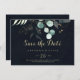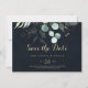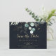 Guld Blommigt Calligraphy Blue Vågrät Bröllop Spara Datumet