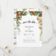 Söt, elegant, moderna och bohemiska bröllop spara datum-platta kort för ditt speciella tillfälle! Vattenfärgen löv foliage gräns i mörk och ljust grönt löv, med naturfrukt och miniatyrblommor i ramar överst på bröllop spara datum. Din namn finns med i modernt typsnitt överst, och omvänt kort för att visa en grönt löv foliage mönster längst bak. Anpassa information om bröllop, datum, plats och annat på framsidan.